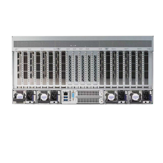 ZH-5201是基于最大支持2颗英特尔至强第四代或第五代可扩展处理器,配合32个DDR5 RECC 5600MHz内存插槽,通过12个PCIe 5.0插槽,实现灵活扩展,可支持10张全高全长双宽涡轮显卡或AI计算卡满足各种大模型场景应用。